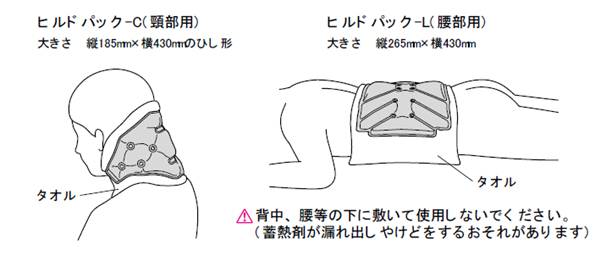 ヒルドパック-Cは頸部に当てやすい菱形、ヒルドパック-Lは腰部に適した長方形です。